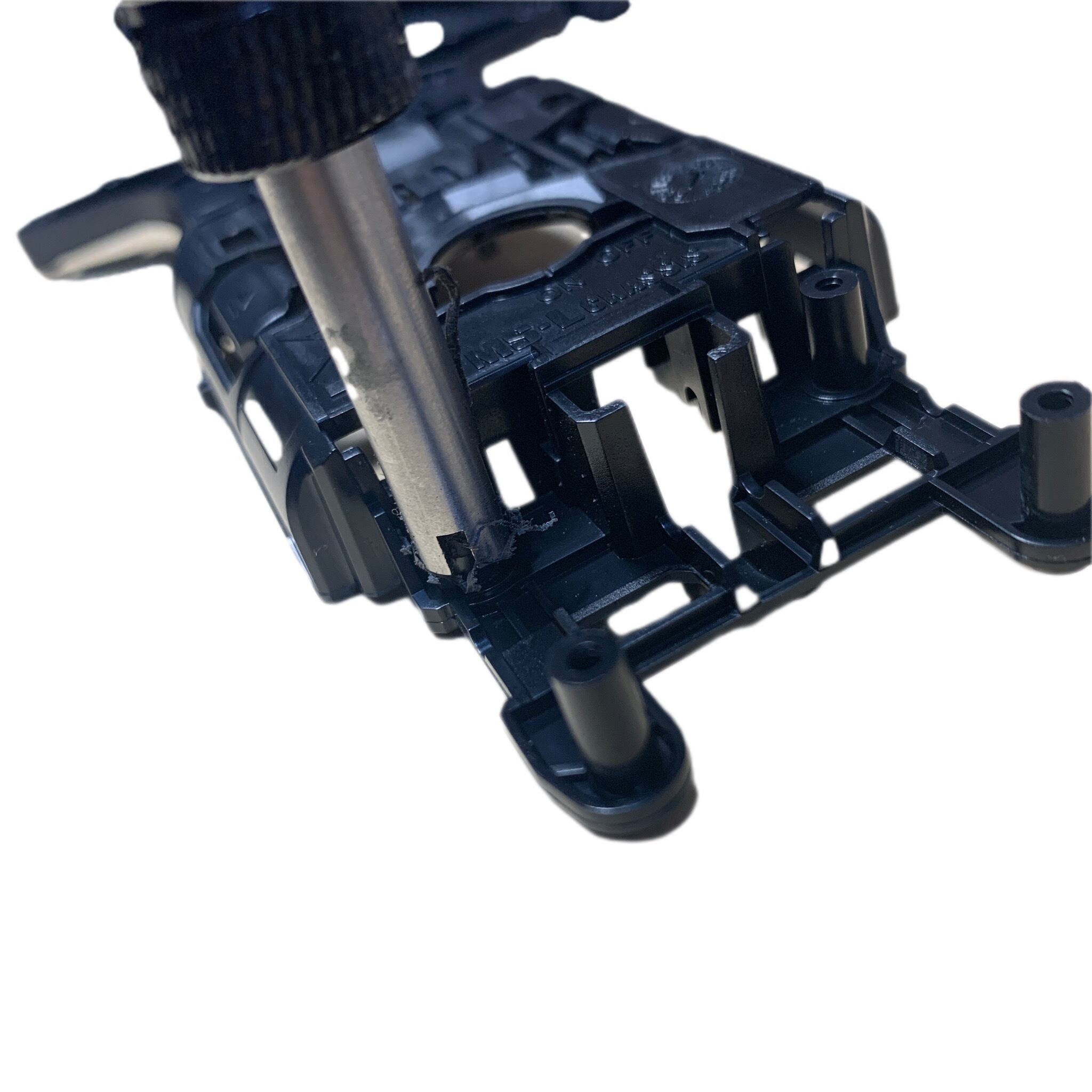 樽バネの代わりにスラダンバネをはめられるよう支柱を細くします。